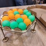 Kolejny prototyp, tym razem bardziej zabawa, niż właściwa gra planszowa. Odbijając piłeczki pingpongowe od stołu rzucamy nimi tak, aby na polu gry ułożyć wskazany na karcie kształt. Kto pierwszy, ten wygrywa. Mam wrażenie, że dobrze by się sprawdziło w pubach z planszówkami.