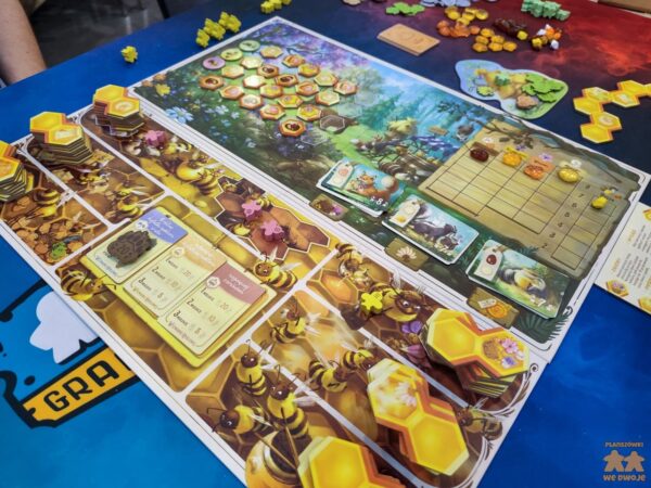 Tytuł, który mieliśmy kiedyś na oku, ale przez życiowe perypetie nigdy w niego nie zagraliśmy. Tym razem okazja nadarzyła się sama – wolny stolik z grą na stoisku Gry Roku. To ślicznie wydane, ładne euro o pszczołach. Grało się przyjemnie, emocji nie brakowało, a mimo niewielkiej liczby akcji wysyłanie owadów na pola akcji angażowało.