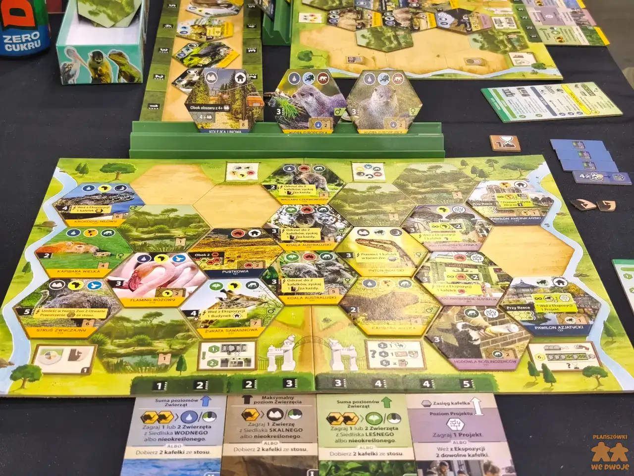 Cała trzyosobowa partia, grana nieco szybciej, niż grałbym normalnie, zajęła nam trochę ponad godzinę. Znów, tytuł dość w naszym stylu, z prostymi zasadami, ale zależnościami wynikającymi z dokładanych kafli zwierząt, budynków i projektów. Mimo uproszczeń względem Ark Novy to jednak gra skierowana do nieco bardziej doświadczonych planszówkowiczów, początkującym bym jej nie polecał.