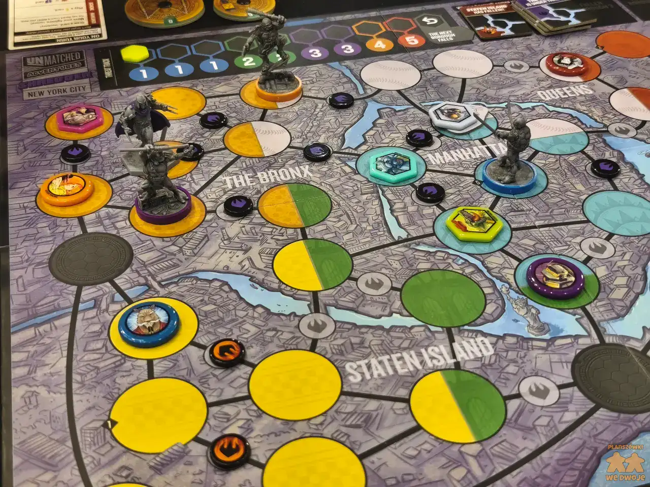 Wojownicze Żółwie Ninja w wersji Unmatched wydają się nietrudne i dość przyjemne, choć faktycznie targetem raczej tutaj nie jestem. Myślę, że gra fajnie mogłaby się sprawdzić wśród młodszych nastolatków (pudełkowo jest to tytuł 9+). Widać, że to przemyślana planszówka – zarówno wizualnie zachęca, jak i mechanicznie nie jest przekombinowana, a nawet tematycznie wydaje się całkiem sensowna, żółwie oraz przeciwnicy mają różne zdolności, które odzwierciedlają ich charakter.