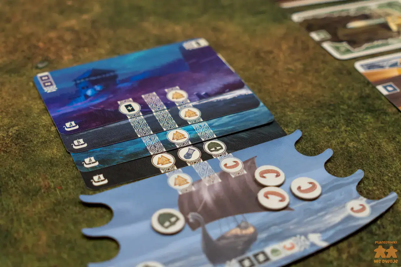 Jednocześnie całkiem nieźle pomyślany jest sposób rozwijania swojej puli kart. W krótkiej perspektywie budujemy ciągi kart wikingów, w dłuższej ciągi kart lokacji. Troszkę przerostem formy nad treścią wydaje mi się jedynie stworzenie dwóch rodzajów lokacji, ponieważ są do siebie bardzo podobne.