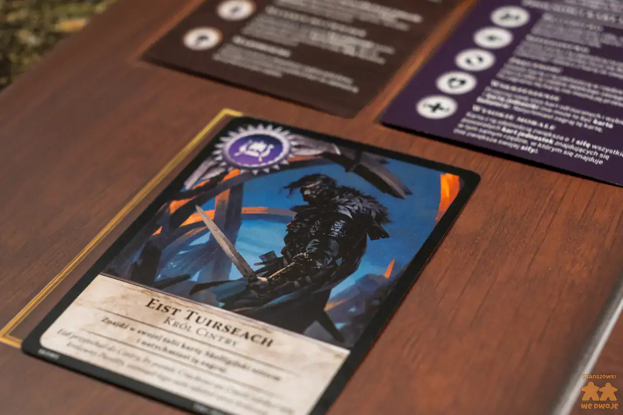 Karty są przeciętnej jakości, a przez czarne ramki już po kilku partiach zaczęły nosić ślady używania. Jeśli planujecie ogrywać poszczególne talie, to zdecydowanie polecam koszulki. Sporą ich zaletą są ładne ilustracje przedstawiające postacie znane z sagi Sapkowskiego i gry CD Projektu Red. Większość informacji na kartach przedstawiono za pomocą symboli. Niektóre umiejętności opisano, ale jest ich naprawdę niewiele, a tekst jest czytelny.